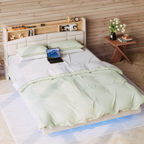 Floating Full Bed Frame With Charging Station - Isabeya QUEEN